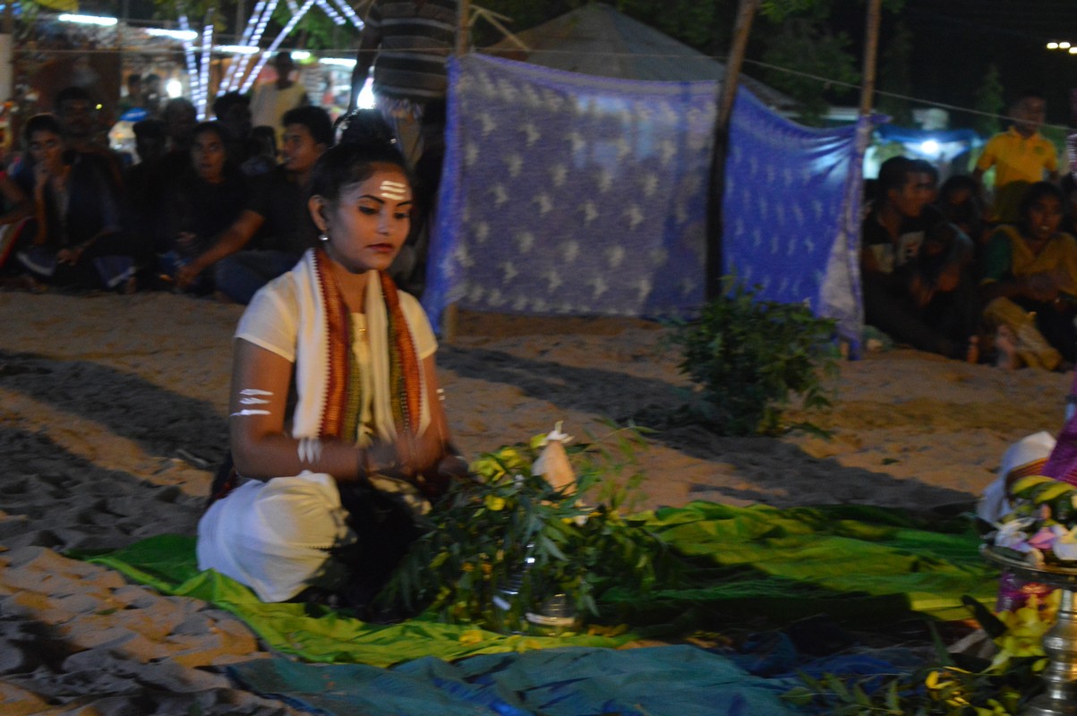 Makidi Kooththu was performed at Munaikkadu Nagashakthi Temple at 10.00 pm on 19/06/2018. This programme was facilitated and coordinated by Mr.S.Chandrakumar Head of the Department of Fine Arts, EUSL. Mr.S.Chandrakumar had acted as “police - inspector” in this performance. The villagers and academics were participated and enjoyed this performance. Students of the Department of Fine Arts were acted in this Makidi Kooththu. Construction of Makidi Koothu stage was made by Mr.S.Chandrakumar and his Students. Mr.Rajathurai was an Annaviyar in this koothu.